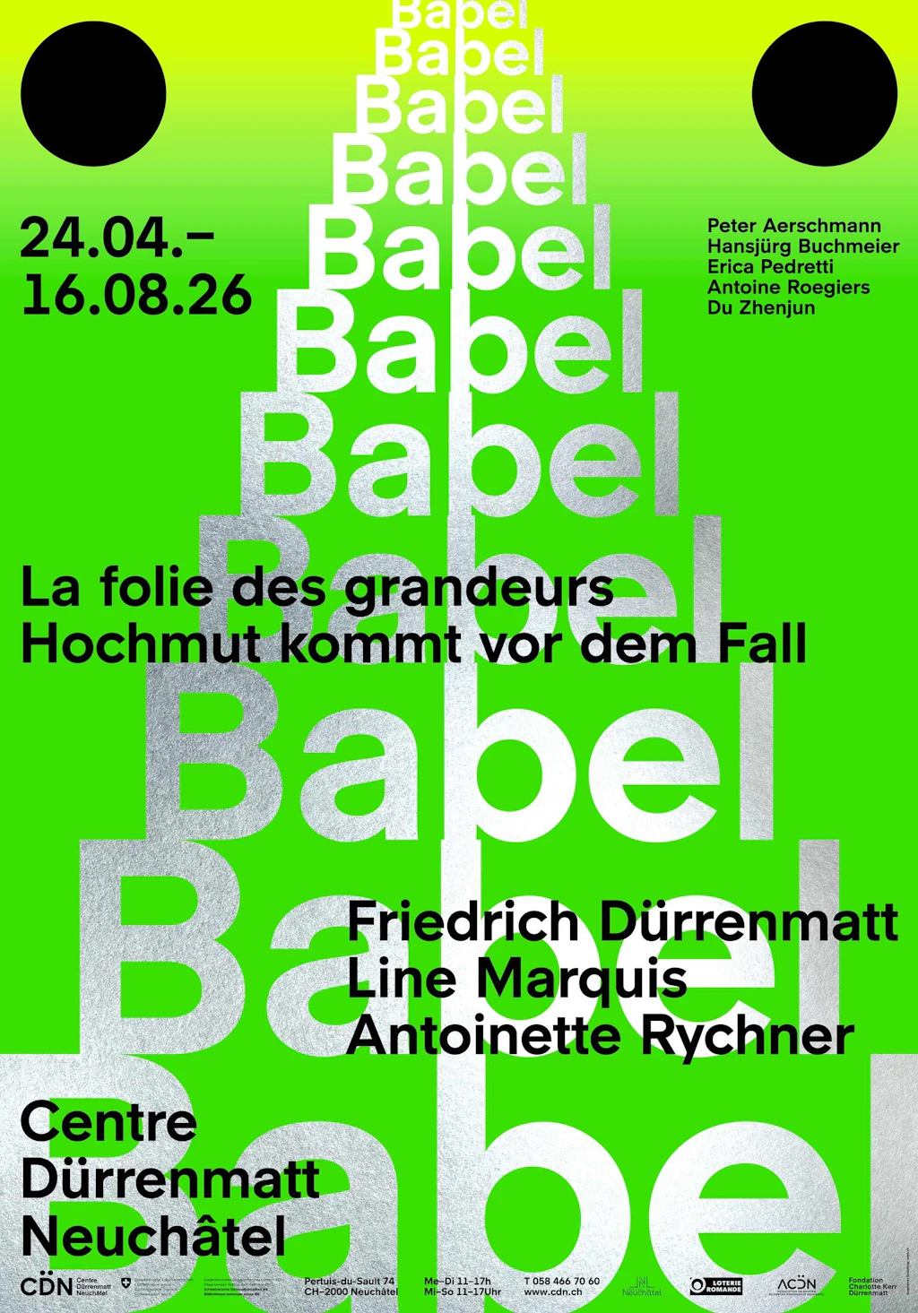 Le texte « Babel » d’Antoinette Rychner est publié dans le Cahier du CDN No40 et diffusé dans l’exposition. Des lectures musicales ont lieu lors du vernissage avec Jacqueline Ricciardi et Fanny Anderegg, ainsi que le 24 mai à 14h40 et le 16 août à 15h15 dans une version longue avec Antoinette Rychner et Fanny Anderegg.